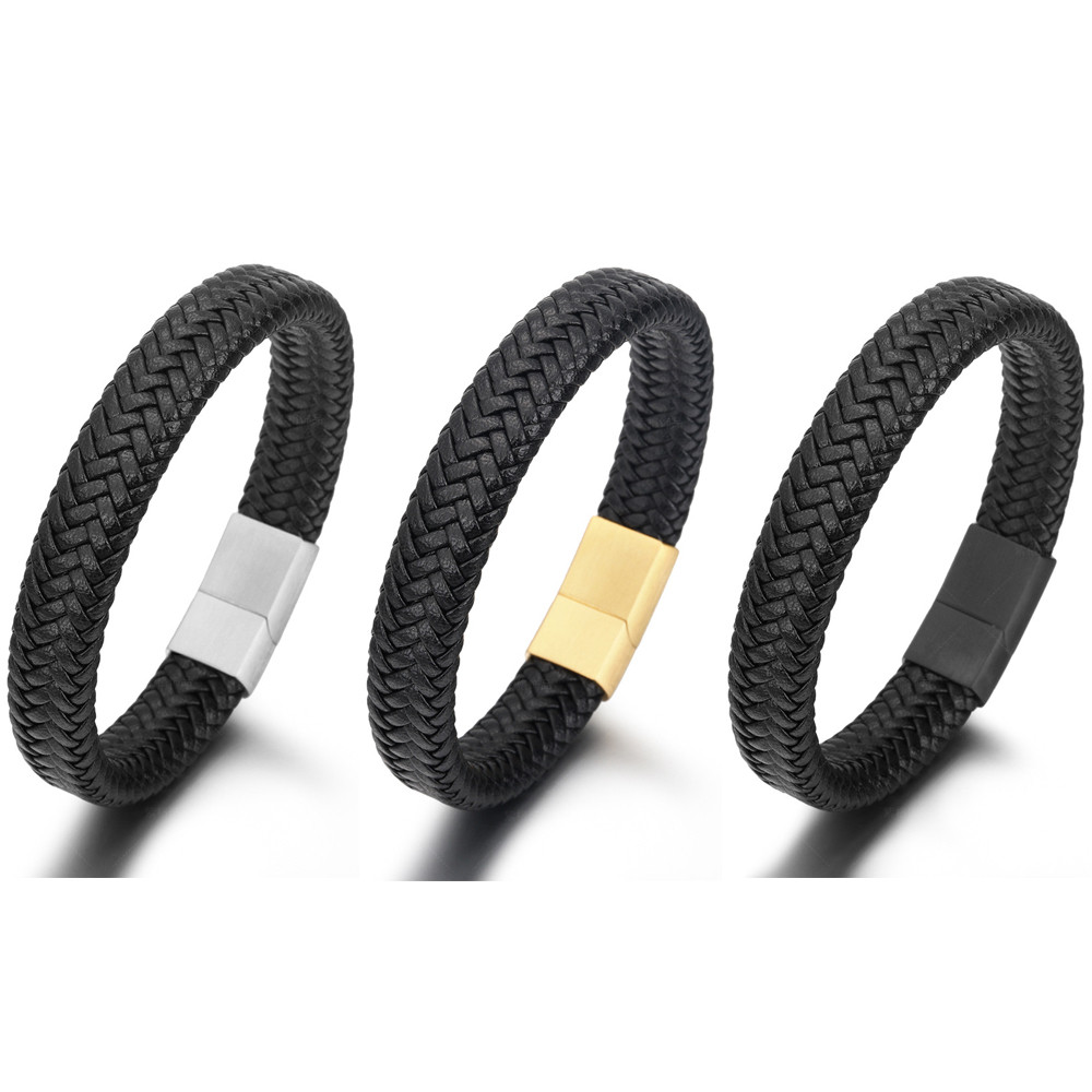 Simple cowhide woven leather rope stainless steel black frosted surface magnetic buckle braceletWholesale Price: