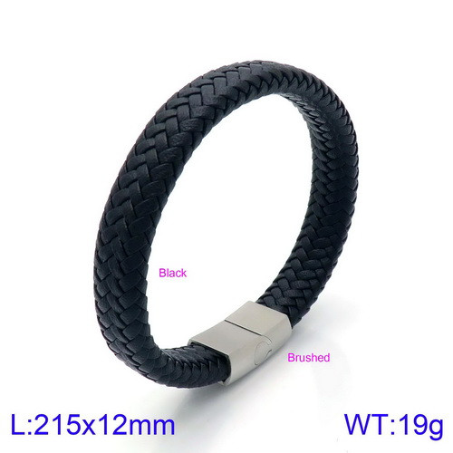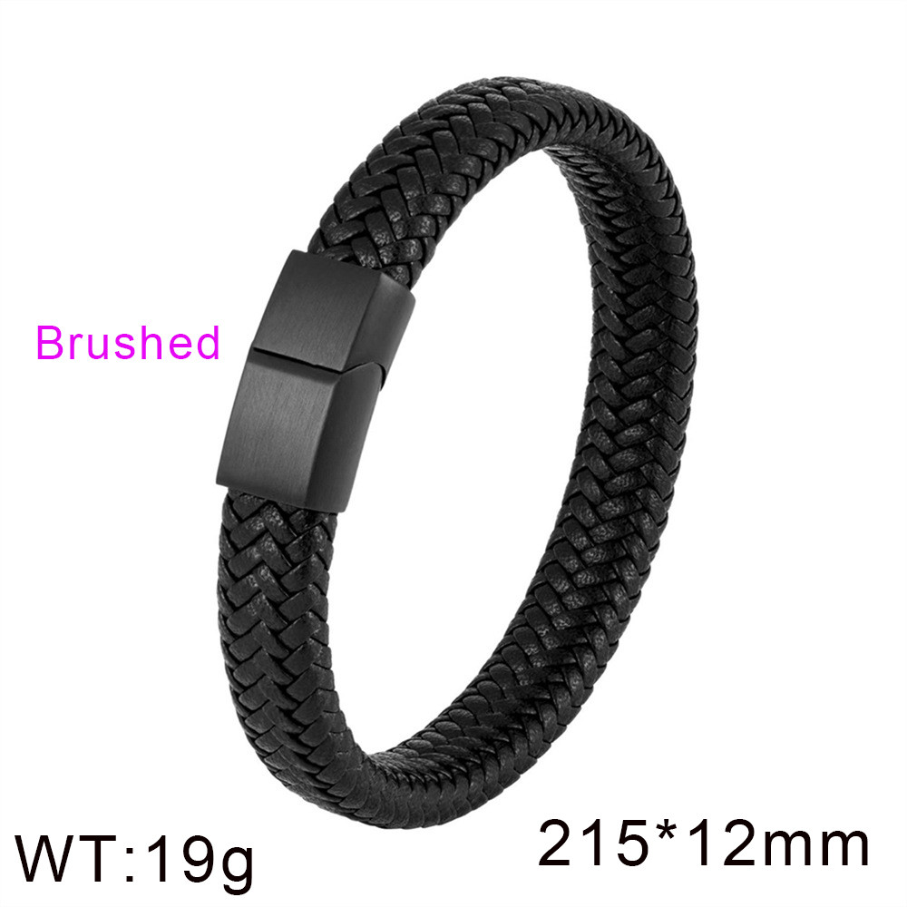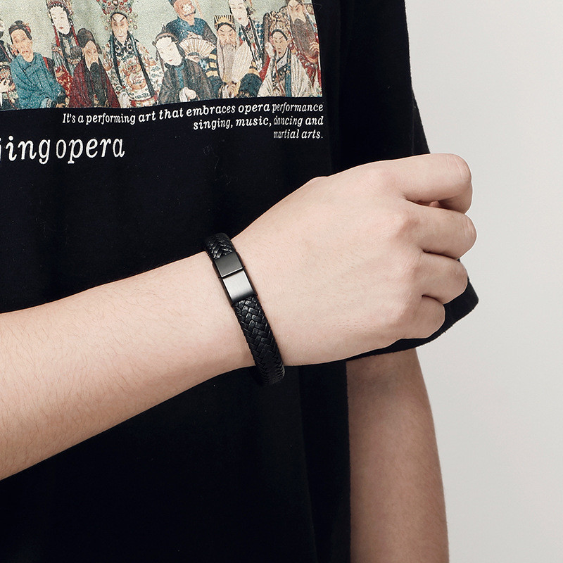 Black matte hand woven leather stainless steel men's braceletWholesale Price: