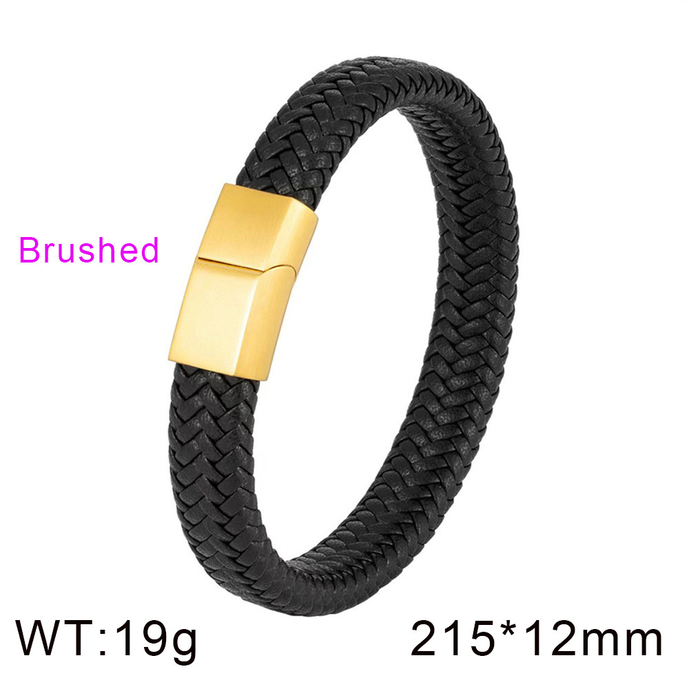 Simple cowhide woven leather rope stainless steel gold frosted surface magnetic buckle braceletWholesale Price: